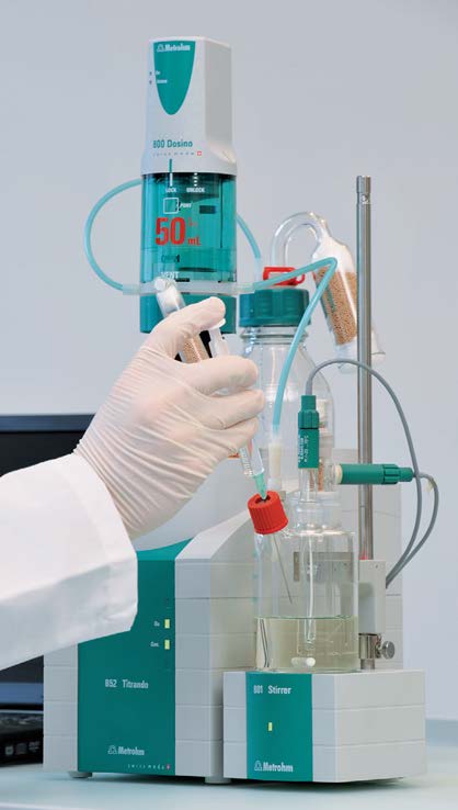 主要功能及特點 851型庫侖法卡氏水分滴定儀集成了多項瑞士萬通的先進技術,是庫侖法卡氏水分滴定儀的代表作。基于無死體積滴定管和多項智能化技術,是高度自動化、智能化實驗室的明智之選。 852型容量法&庫侖法卡氏水分測定儀的突出特點是兼具庫侖法/容量法兩種卡氏水分滴定方法。當您要分析含水量范圍很寬的樣品時,852精湛一代TM就是您明智的選擇。采用tiamoTM軟件控制,可以同時進行兩種測定。   水分測定標準舉例 GB/T 11133-2015? ? ? ?石油產(chǎn)品、潤滑油和添加劑中水含量的測定 卡爾費休庫侖滴定法 GB/T 11146-2009? ? ? 原油水含量測定 卡爾·費休庫侖滴定法 GB/T 6283-2008? ? ? 化工產(chǎn)品中水分含量的測定 卡爾·費休法(通用方法) GB/T 1600-2001? ? ? ?農藥水分測定方法 GB/T 1746-1979? ? ? ? 涂料水分測定法 GB 5009.3-2016? ? ? ? 食品國家標準 食品中水分的測定 SH/T 0246-1992? ? ? ?輕質石油產(chǎn)品中水含量測定法(電量法) 《中國藥典》 0832??水分測定法   溴價、溴指數(shù)測定標準舉例 庫侖法溴價、溴指數(shù)測定 SH/T 0630? 石油產(chǎn)品溴價 、溴指數(shù)測定法(電量法) ASTM D1492? Standard Test Method for BromineIndex of Aromatic Hydrocarbons by Coulometric? Titration 容量法溴價、溴指數(shù)測定 GB/T 1815? ?苯類產(chǎn)品溴價的測定 ASTM D1159? Test Method for Bromine Numbers of Petroleum Distillates and Commercial Aliphatic Olefins by Electrometric Titration