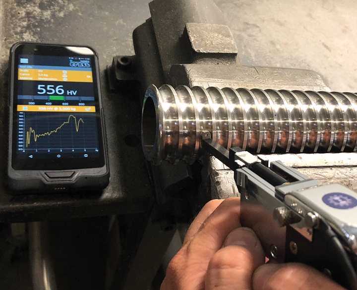 原理與功能 ERNST壓痕深度電阻測量法,是維氏標準方法的替代方法可以測試難以進入領(lǐng)域: 內(nèi)表面, 齒輪齒, 不規(guī)則形狀, 連接部位, 齒輪漸開線等工業(yè)級6”安卓平板,用于數(shù)據(jù)讀取、管理及共享無線數(shù)據(jù)傳輸出,無線充電可根據(jù)需要開具意大利國家認可委員會ACCREDIA 認可證書符合 DIN 50158 標準   創(chuàng)新 ● ?人性化安裝安卓APP程序 ● ?輕松定制個性化試驗報告 ● ?無線藍牙通訊 ● ?可充電電池 ● ?在試驗中添加條形碼、圖片、定位和備忘等信息   應(yīng)用 應(yīng)用一種測試方法可以實現(xiàn)不同材料的硬度測試如:鐵素體、馬氏體、奧氏體鋼、鋁、銅、黃銅等。力值范圍:1Kg-10Kg。這種快速測試試樣表面的硬度非常重要且對生產(chǎn)很有作用。它還可以快速的評價熱處理過程中較淺的硬化層的深度。             焊縫及熱影響區(qū)(HAZ)的測試                 內(nèi)孔,齒輪漸開線等的測試                   軸承的測試